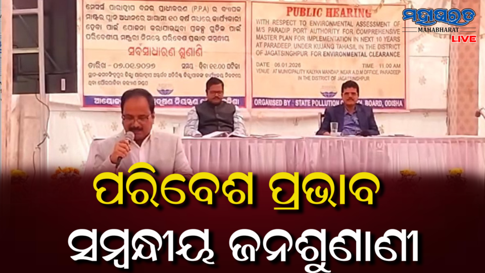 ପାରାଦୀପ ବନ୍ଦରର ବ୍ୟାପକ ମାଷ୍ଟର ପ୍ଲାନ୍ ଅଧୀନରେ ଆଗାମୀ ଦଶବର୍ଷ ମଧ୍ୟରେ କାର୍ଯ୍ୟକାରୀ ହେବାପାଇଁ ଯୋଜନା କରାଯାଉଥିବା ପ୍ରକଳ୍ପ ଗୁଡିକ ପାଇଁ ପାରିବେଶୀୟ ମଞ୍ଜୁରୀ ନିମନ୍ତେ ପରିବେଶ ପ୍ରଭାବ ସମ୍ବନ୍ଧୀୟ ଜନଶୁଣାଣୀ ଶିବିର ପାରାଦୀପ ମୁନିସିପାଲିଟି କଲ୍ୟାଣ ମଣ୍ଡପ ପରିସରରେ ଅନୁଷ୍ଠିତ ହୋଇଯାଇଛି l ଏହି ଜନଶୁଣାଣୀ ଶିବିର ଜନଶୂନ୍ୟ ହୋଇପଡିଥିବା ବେଳେ ପାରାଦୀପ ଅଞ୍ଚଳର ପରିବେଶକୁ ନେଇ ଉପସ୍ଥିତ କିଛି ଲୋକ ସ୍ଥାନୀୟ ପ୍ରଦୂଷଣ ବିଭାଗର କାର୍ଯ୍ୟ ଦକ୍ଷତା ଉପରେ ପ୍ରଶ୍ନ ଉଠାଇଛନ୍ତି l ହେଲେ ଏହାକୁ ଖଣ୍ଡନ କରିଛନ୍ତି ସ୍ଥାନୀୟ ପ୍ରଦୂଷଣ ବୋର୍ଡର ଅଧିକାରୀ, ପାରାଦୀପରେ ପ୍ରଦୂଷଣକୁ ନେଇ ଚିନ୍ତା କରିବାର ନାହିଁ ସବୁକିଛି ସ୍ୱାଭାବିକ ରହିଛି, ପାରାଦୀପ ବନ୍ଦର ଆଜି ଦ୍ରୁତ ଗତିରେ ସୁନାମ ଅର୍ଜନ କରୁଥିବା ସମୟରେ ଆଗାମୀ ଦିନରେ ଅନେକ ପ୍ରକଳ୍ପ କାର୍ଯ୍ୟକାରୀ ହେବାକୁ ଯାଉଛି l